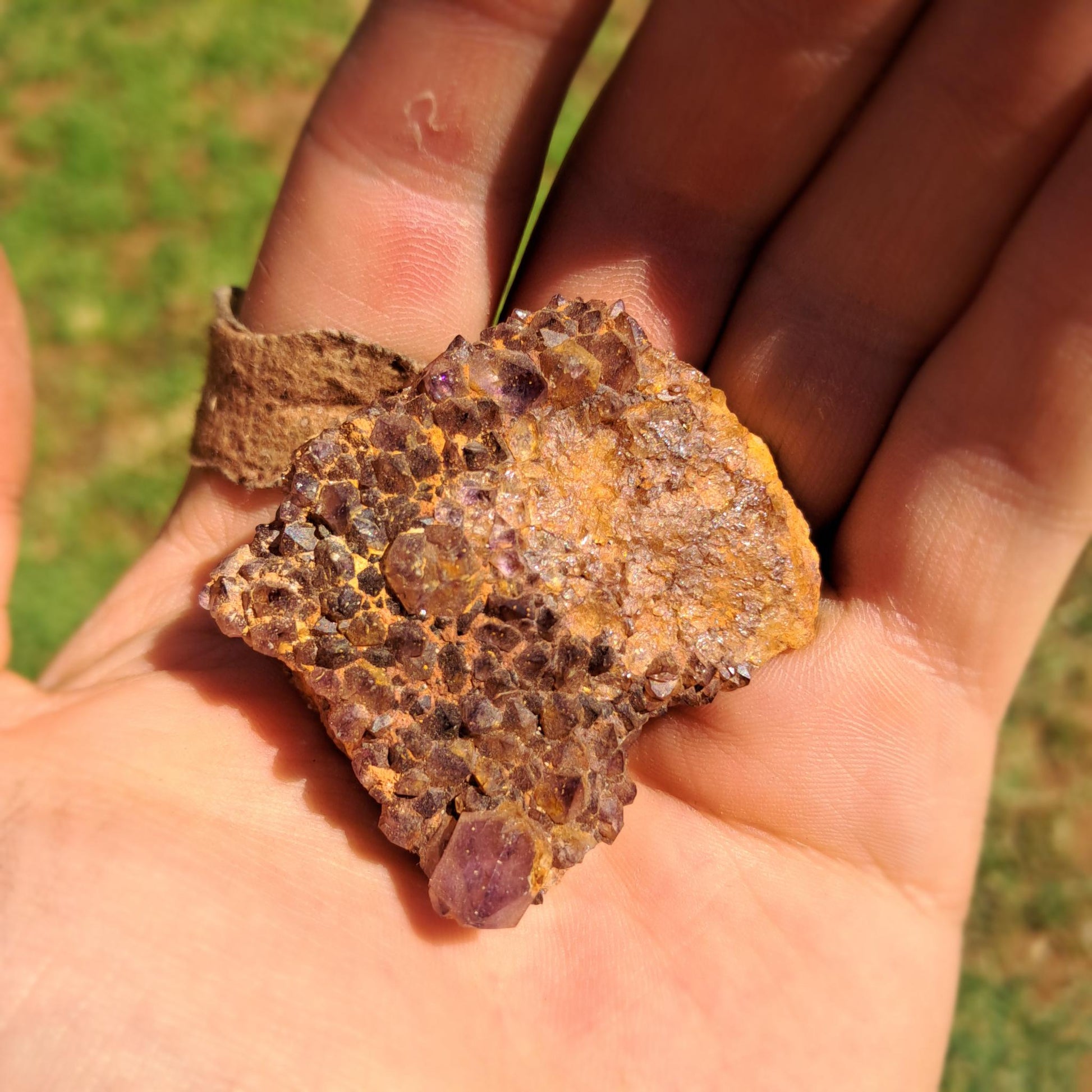 Amethyst is a variety of quartz that forms in geodes or cavities within volcanic rock. A violet to purple variety of quartz that owes its color to gamma irradiation and the presence of traces of iron built into its crystal lattice. The crystal grows slowly in these cavities as silica-rich water deposits minerals over time.