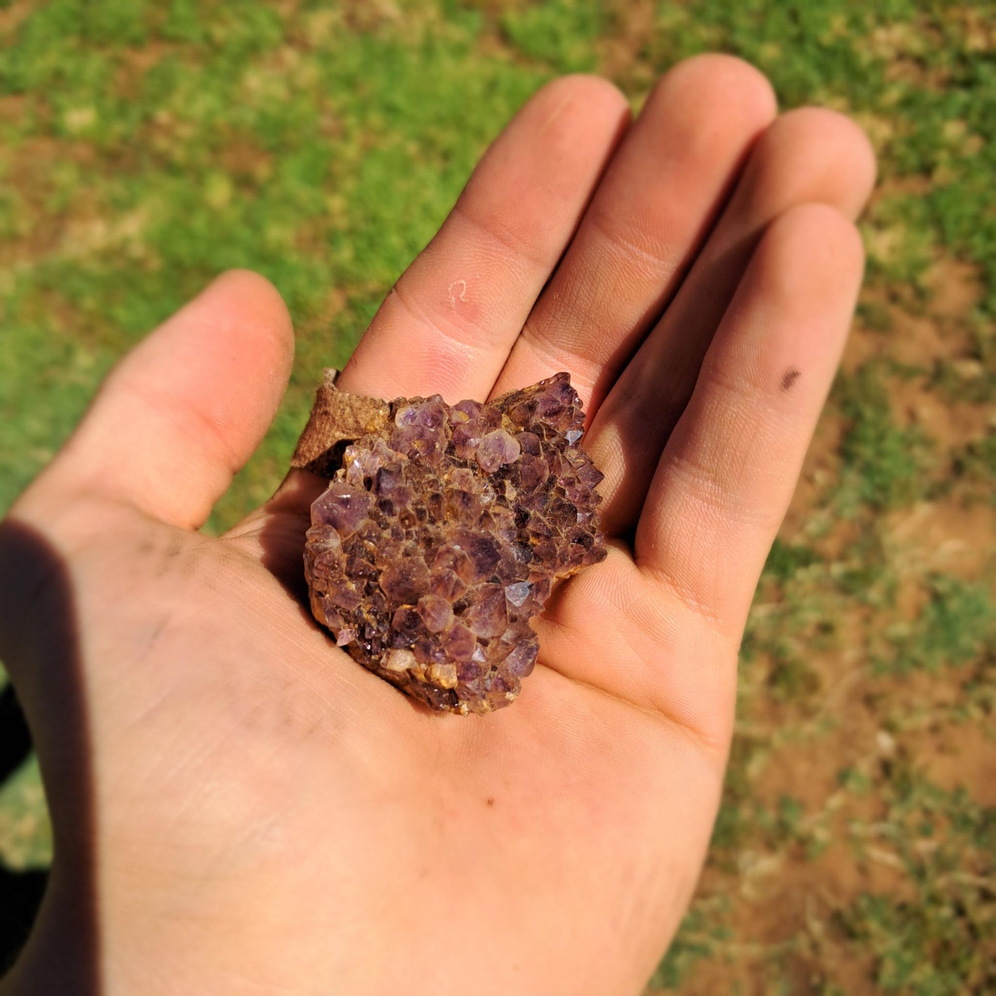 Amethyst is a variety of quartz that forms in geodes or cavities within volcanic rock. A violet to purple variety of quartz that owes its color to gamma irradiation and the presence of traces of iron built into its crystal lattice. The crystal grows slowly in these cavities as silica-rich water deposits minerals over time.